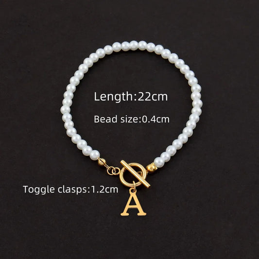 Wholesale Jewelry Simple Style Solid Color 304 Stainless Steel Imitation Pearl Titanium Steel 18K Gold Plated Plating Bracelets Anklet
