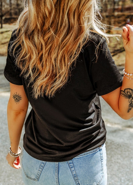 Black Rhinestone Leopard Skull Graphic T Shirt