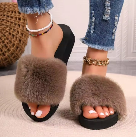 Ladies Fashion Trend Fluffy Slippers, Sliders