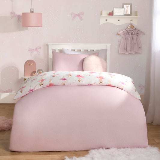 Kids Ballerina Print Reversible Duvet Cover Set - Pink/White