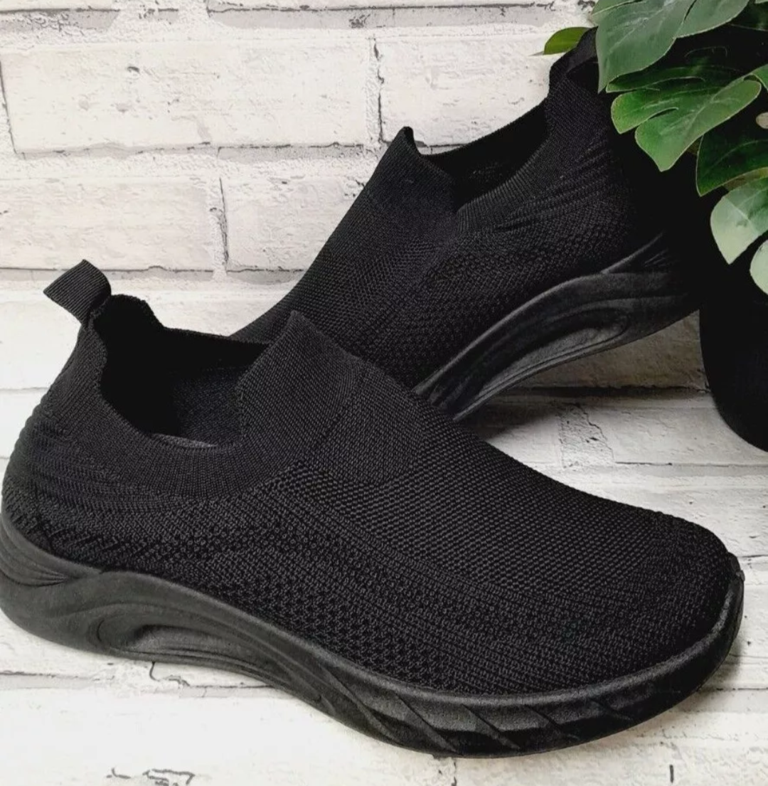 The Black Sock Trainers in size 5-6 (40) feature a comfortable slip-on design, ensuring ease of wear. This design minimizes the time spent on putting on and removing footwear, which can improve efficiency in daily routines. The snug fit enhances stability during movement, promoting better foot support.