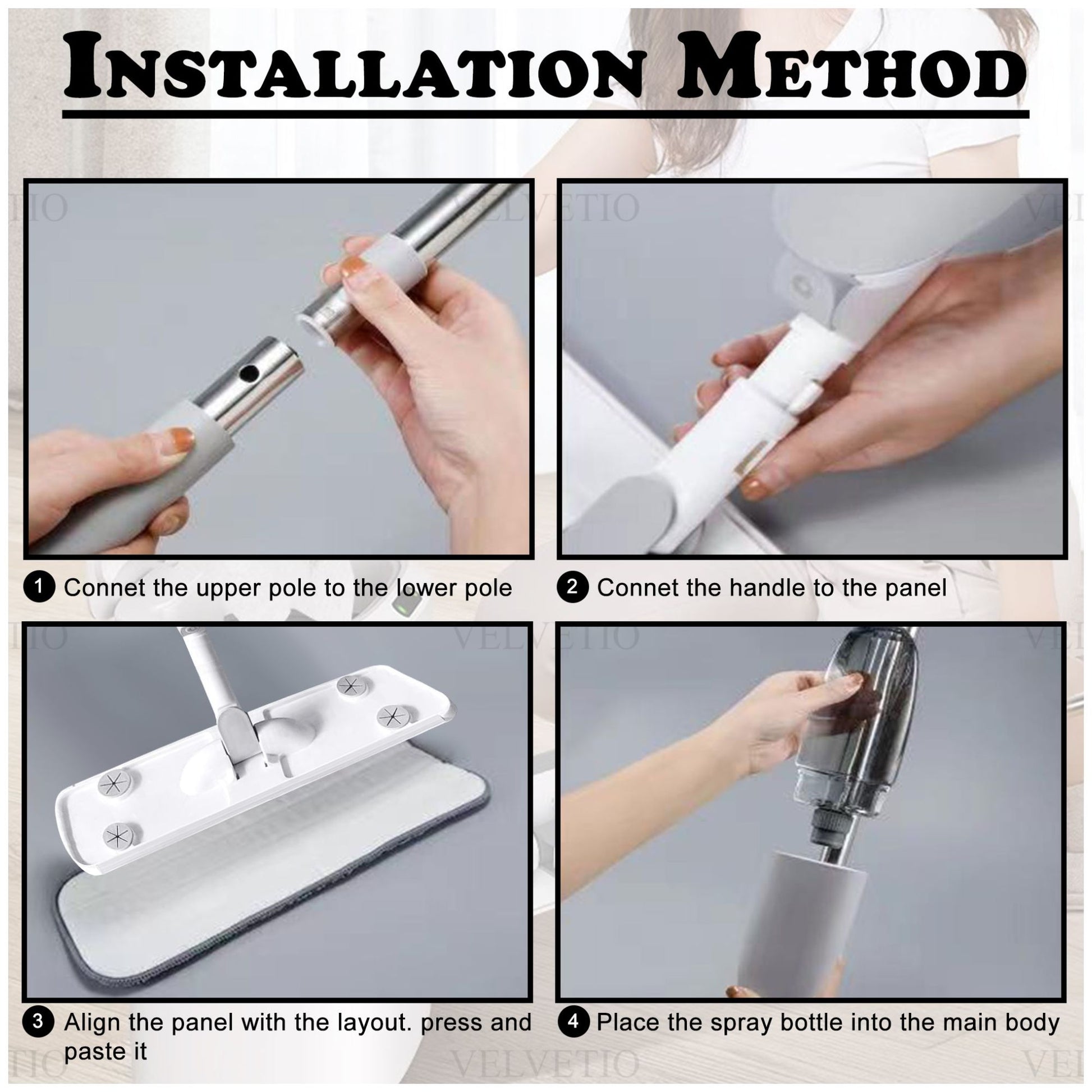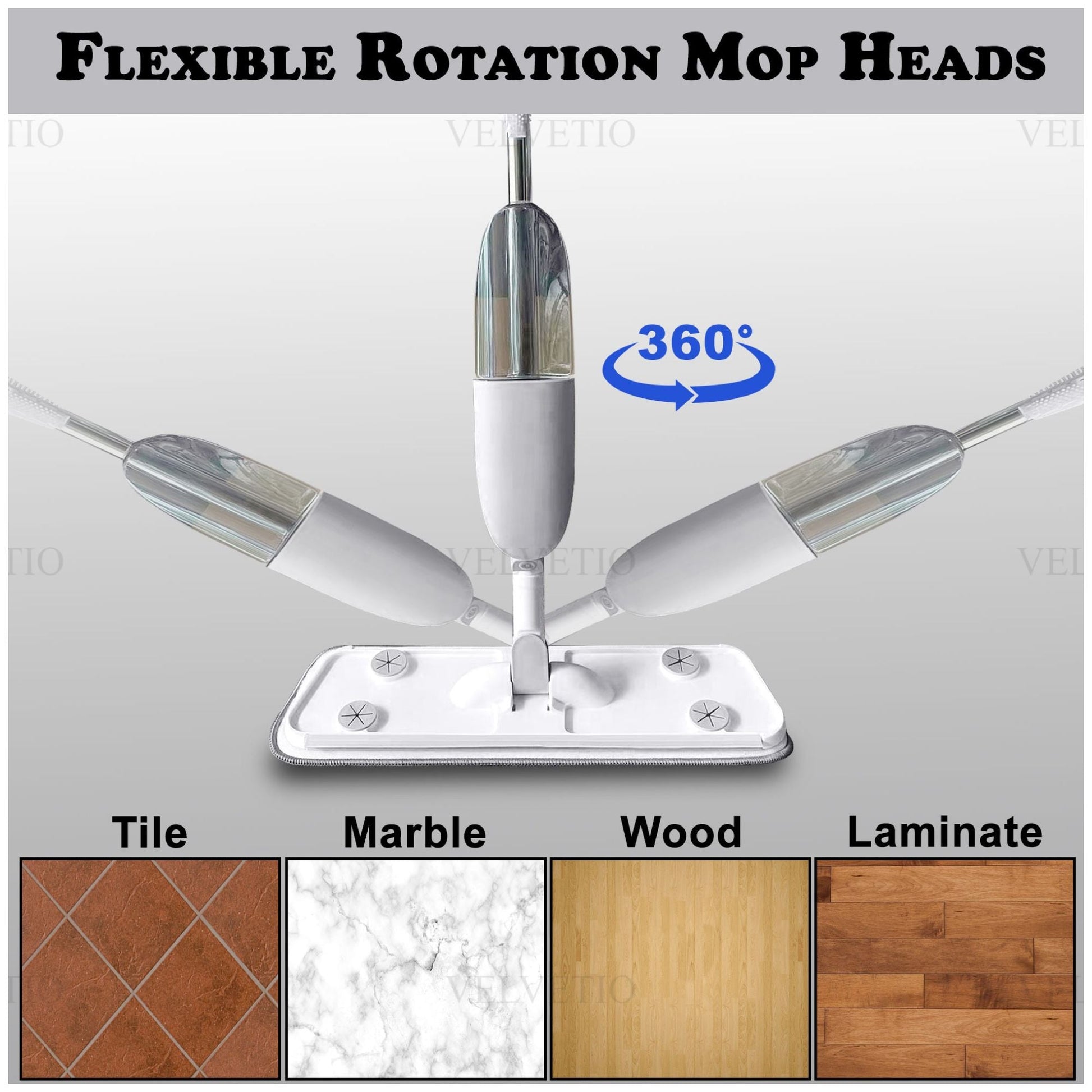 Effortlessly maintain spotless floors with this versatile Spray Mop Cleaning System, featuring a refillable water bottle, 360° swivel head, and three reusable microfiber pads ideal for hardwood, tile, laminate, and vinyl surfaces. Its ergonomic handle and trigger allow for comfortable, one-handed spraying, while the included detail brush tackles stubborn dirt and grout with ease. Designed for efficiency and convenience, this lightweight mop offers a streak-free clean without the need for bulky buckets making it the perfect eco-friendly solution for everyday home cleaning.