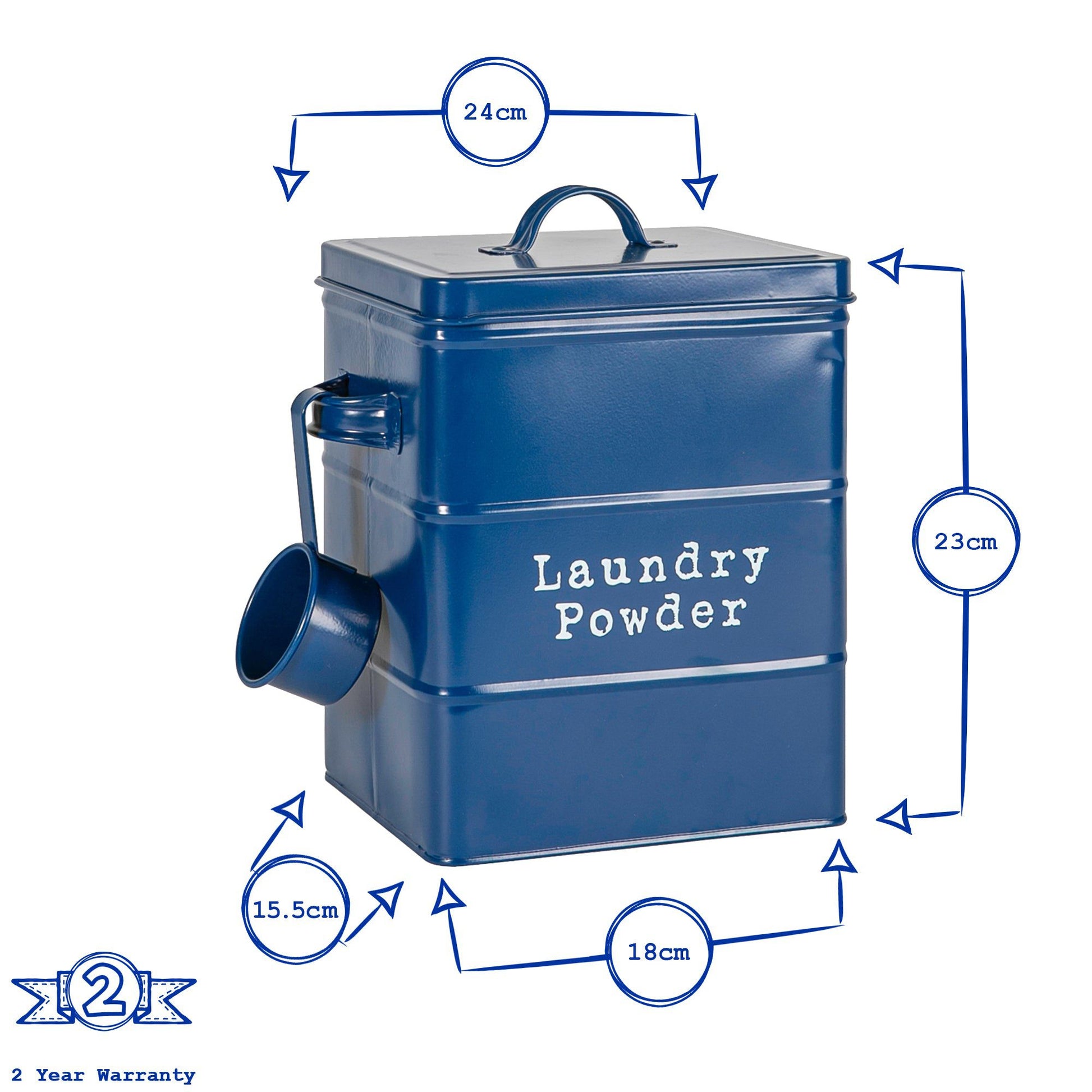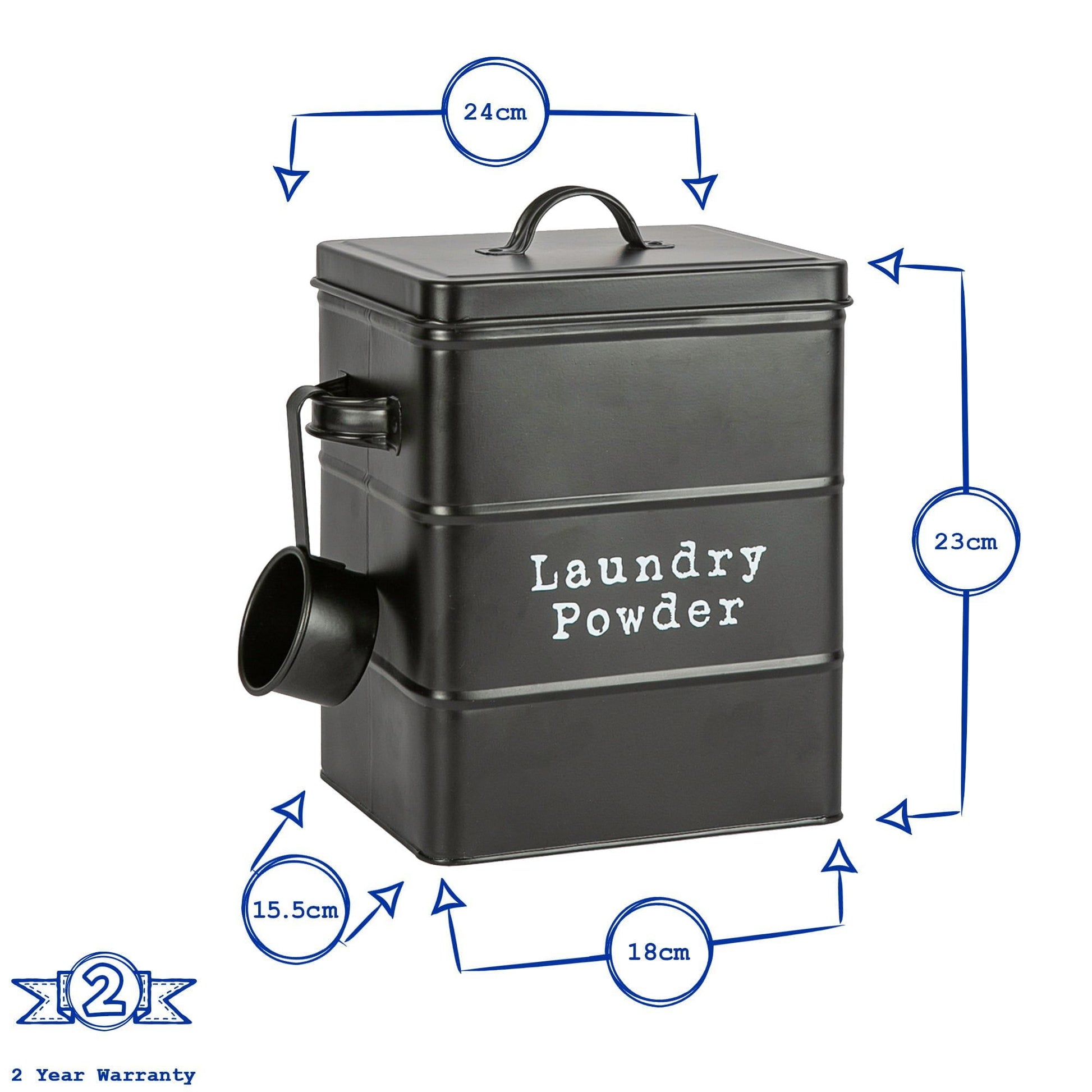 Made from lightweight metal with a powder-coated finish, this washing powder tin possess a real vintage charm, and the elegant handle positioned on top of the airtight lid makes accessing your washing powder a doddle.